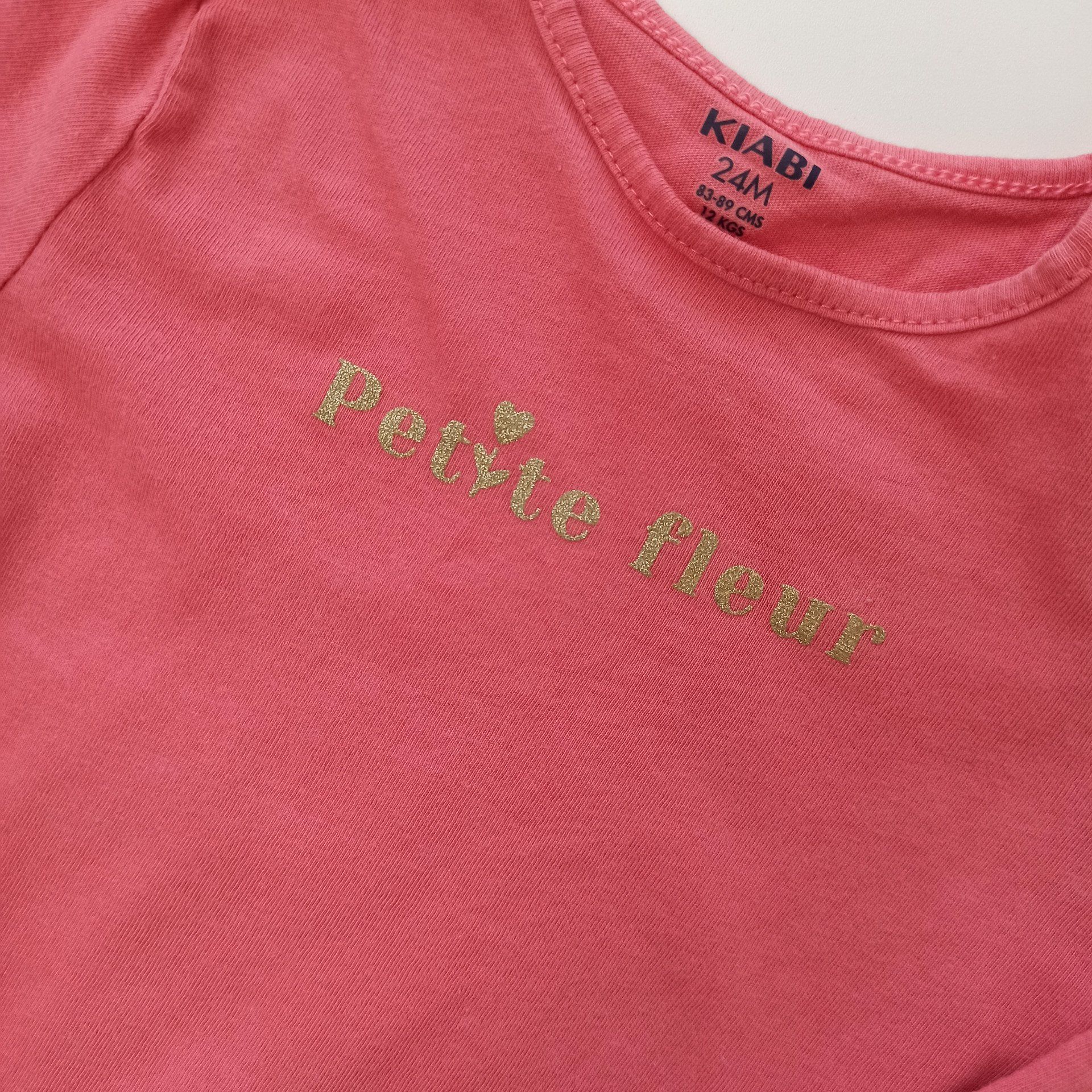 Tee-shirt manches longues 24 mois, écritures pailletées.